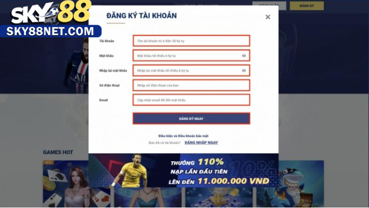 Sau khi bạn nhấn vào nút đăng ký, trang web sẽ yêu cầu bạn nhập các thông tin cá nhân đầy đủ nhất cần thiết như tên, địa chỉ email, mật khẩu và các thông tin khác theo yêu cầu. Quy định của Sky88 yêu cầu bạn cung cấp thông tin chính xác và đầy đủ để hoàn tất quá trình đăng ký.